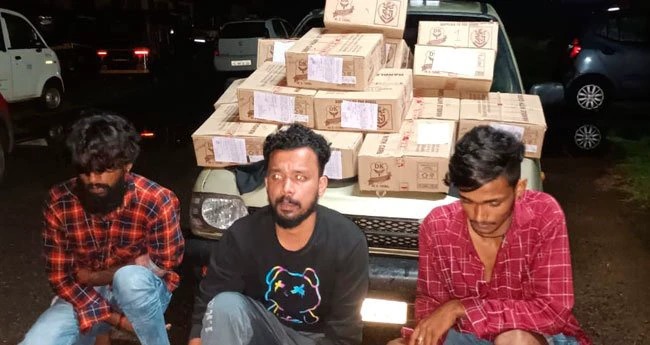 നീലേശ്വരം: കാറില് കടത്തുകയായിരുന്ന 129.6 ലീറ്റര് കര്ണാടകമദ്യവുമായി മൂന്നുപേര് അറസ്റ്റില്.നീലേശ്വരം പള്ളിക്കരയിലെ സന്ദേശ്, അജയകുമാര്, ആദിത്യന് എന്നിവരാണ് അറസ്റ്റിലായത്. കാസര്ഗോഡ് എക്സൈസ് എന്ഫോഴ്സ്മെന്റ് ആന്ഡ് ആന്റി നാര്ക്കോട്ടിക്ക് സ്പെഷല് സ്ക്വാഡിലെ പ്രിവന്റീവ് ഓഫീസര് സി.കെ.അഷ്റഫും സംഘവും കഴിഞ്ഞദിവസം പേരോലില് വച്ചാണ് പ്രതികളെ അറസ്റ്റ് ചെയ്തത്. എക്സൈസ് സംഘത്തില് പ്രിവന്റീവ് ഓഫീസര് എം. വി.സുധീന്ദ്രന്, സിഇഒമാരായ എ.സാജന്, സി.അജീഷ്, നിഷാദ് പി. നായര്, വി.മഞ്ജുനാഥന്, പി.ശൈലേഷ് കുമാര്, ഡ്രൈവര് പി.വി.ദിജിത്ത് എന്നിവരുമുണ്ടായിരുന്നു.