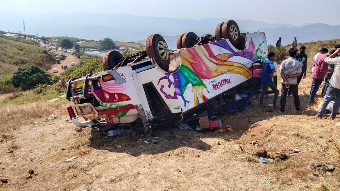 തുമകൂർ ജില്ലയിലെ ഷിറ താലൂക്കിൽ നിന്നുള്ള വിനോദസഞ്ചാരികൾ മാണിക്യധാര, ദത്തപീഠം, മുല്ലയനഗിരി എന്നിവിടങ്ങളിലേക്ക് വിനോദയാത്ര പോയിരുന്നു. ഇതിനിടെ ഡ്രൈവറുടെ നിയന്ത്രണം നഷ്ടപ്പെട്ട് ബസ് മറിയുകയായിരുന്നു. അപകടത്തിൽ പരിക്കേറ്റവരിൽ മുഹമ്മദ് സവാസ് എന്ന ആറുവയസ്സുകാരൻ ചികിത്സയിലിരിക്കെ മരിച്ചു. ദത്തപീഠത്തിന് സമീപം മാണിക്യറയിൽ നിന്ന് പോകുന്നതിനിടെയാണ് ബസ് മറിഞ്ഞതെന്നാണ് വിവരം.