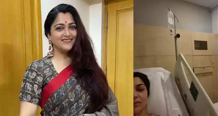 പനിയും മേലുവേദനയും കാരണം ആശുപത്രിയില് പ്രവേശിപ്പിച്ചു. ഹൈദരാബാദ് അപ്പോളോ ആശുപത്രി എന്ന സുരക്ഷിത കൈകളിലായതു കൊണ്ട് ആശ്വാസം” ഖുശ്ബു ട്വിറ്ററില് കുറിച്ചു. ശാരീരികമായി ബുദ്ധിമുട്ടുകള് അനുഭവപ്പെട്ടാല് അതു നിസ്സാരമായി അവഗണിക്കരുതെന്നും ഖുശ്ബു ആരാധകരോടായി പറഞ്ഞു . “നിങ്ങളുടെ ശരീരത്തിനു ക്ഷീണം തോന്നിയാല് അത് അവഗണിക്കാതിരിക്കൂ. ഞാന് സുഖം പ്രാപിച്ച് വരുകയാണ്.”