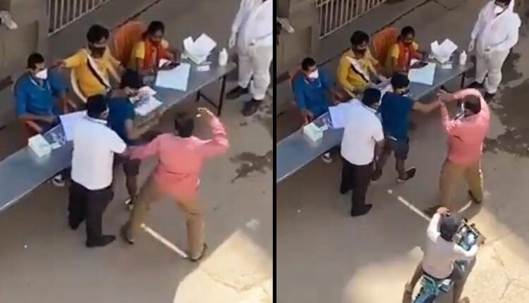 ബെംഗളുരു: കോവിഡ് പരിശോധനക്ക് വിസമ്മതിച്ച യുവാവിനെ ബിബിഎംപി ഉദ്യോഗസ്ഥർ നിഷ്കരുണം മർദിക്കുന്നതിന്റെ ദൃശ്വങ്ങൾ പുറത്തായി. ബിബിഎംപിയുടെ സൗത്ത് സോണിൽ പെട്ട ചിക്കപെട്ട് നിയോജക മണ്ഡലത്തിലെ ധർമമായ സ്വാമി ടെംപിൾ വാർഡിലെ നാഗർത്ത് പെട്ടിലാണ് സംഭവം.