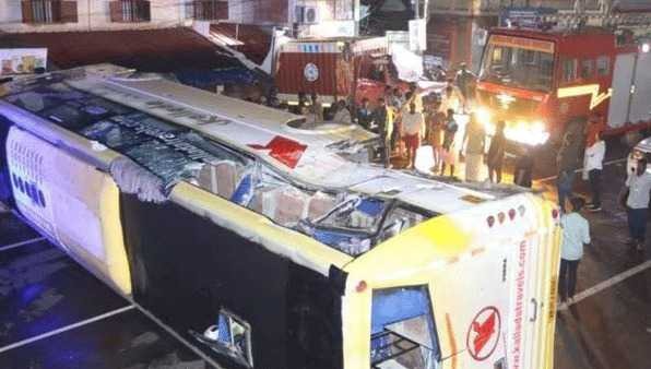 ബെംഗളൂരു: മംഗളൂരുവിൽ നിന്നും പോയ ബസ് അപകടത്തിൽ പെട്ടു. ഇന്നു പുലർച്ചെ കണ്ണൂർ തോട്ടടയിൽ ബസും ലോറിയും കൂട്ടിയിടിച്ചുണ്ടായ അപകടത്തിൽ ബസ് യാത്രക്കാരൻ മരിച്ചു. ഡ്രൈവർ ആണ് മരിച്ചതെന്ന് പുറത്ത് വരുന്ന സൂചന. ഇരുപത്തിയഞ്ചോളം പേർക്കു പരിക്കേറ്റു. മരിച്ചയാളെ തിരിച്ചറിഞ്ഞിട്ടില്ല. ഇന്ന് പുലർച്ചെ 12.45ന് ആയിരുന്നു അപകടം.