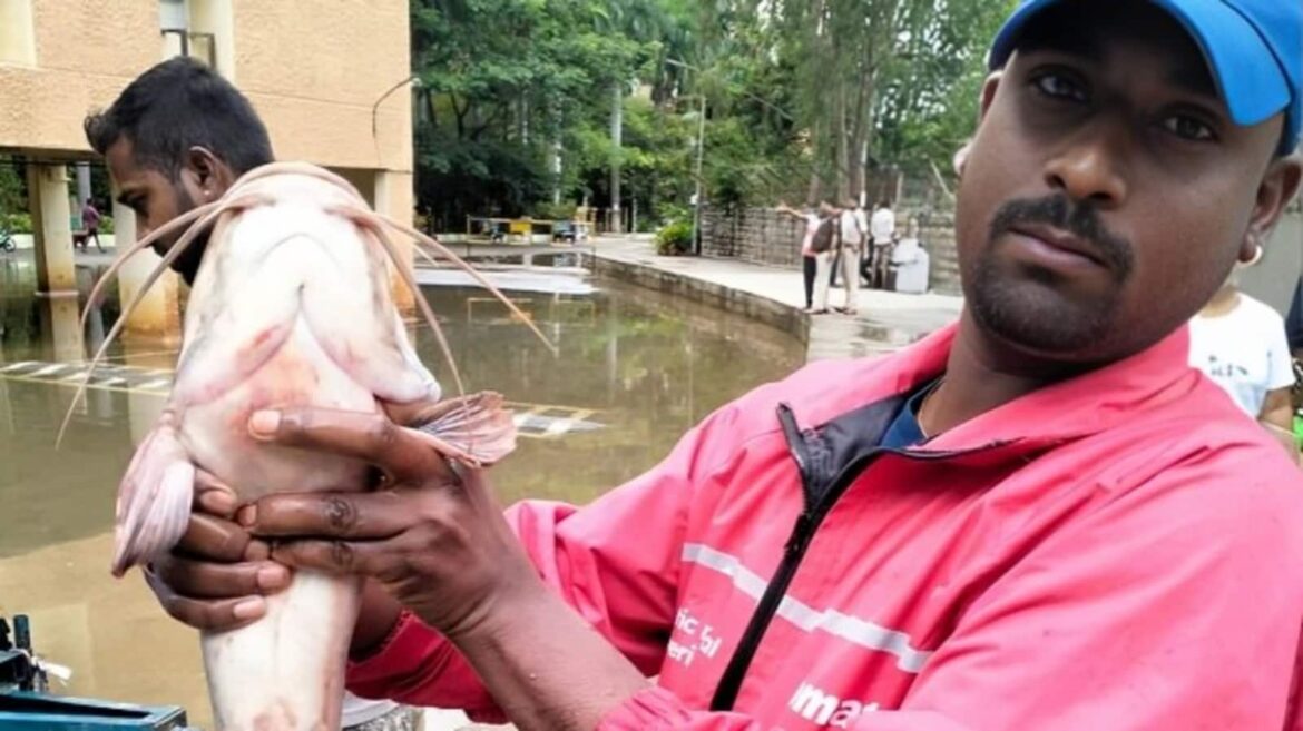 ഒരാള് വലിയൊരു മത്സ്യവുമായി നില്ക്കുന്നതാണത്.ഇത് മുന് രാഷ്ട്രപതി ഡോ. എ.പി.ജെ അബ്ദുള് കലാം താമസിച്ചിരുന്ന കേന്ദ്രീയ വിഹാറിന്റെ ഫ്ലാറ്റിന് സമീപത്ത് നിന്നാണെന്നാണ് ചിലര് കുറിക്കുന്നത്. ചിത്രത്തില് ഒരാള് അത്യാവശം വലിയൊരു മത്സ്യത്തെ കൈയില്പിടിച്ച് നില്ക്കുകയാണ്. എന്തായായലും ബംഗളൂരിന്റെ പലഭാഗത്തെയും ഫ്ലാറ്റുകളില് നിന്നും ഇത്തരത്തിലുള്ള മീനുകളെ ഇപ്പോള് കണ്ടെത്താമെന്നാണ് നെറ്റിസണ്സ് പറയുന്നത്.മഴക്കെടുതി നിമിത്തം സഹിക്കെട്ട കേന്ദ്രീയ വിഹാറിലെ ധാരാളം ആളുകള് തങ്ങളുടെ അപ്പാര്ട്ടുമെന്റുകള് വില്ക്കാന് തീരുമാനിച്ചതായി റിപ്പോര്ട്ടുകളുണ്ട്. മഴ എത്രയും വേഗം അവസാനിച്ച് മാനം തെളിയട്ടെ എന്ന് നെറ്റിസണ്സ് പ്രത്യാശിക്കുന്നു…