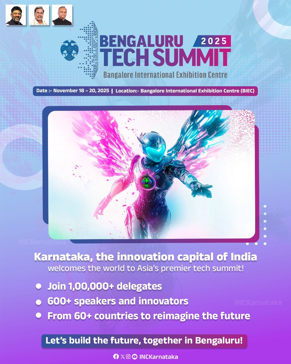 ബെംഗളൂരു : ബെംഗളൂരു ടെക് സമ്മിറ്റ് നവംബർ 18-ന് ആരംഭിക്കും. ഫ്യൂച്ചറൈസ് എന്ന പ്രമേയം മുൻനിർത്തി നടക്കുന്ന മൂന്നുദിവസത്തെ സമ്മേളനത്തിൽ 60 രാജ്യങ്ങളിൽനിന്നുള്ള 600-ലധികം സംരംഭകരെത്തുമെന്ന് മുഖ്യമന്ത്രി സിദ്ധരാമയ്യ അറിയിച്ചു.ഒരുലക്ഷം പ്രതിനിധികൾ പങ്കെടുക്കും.