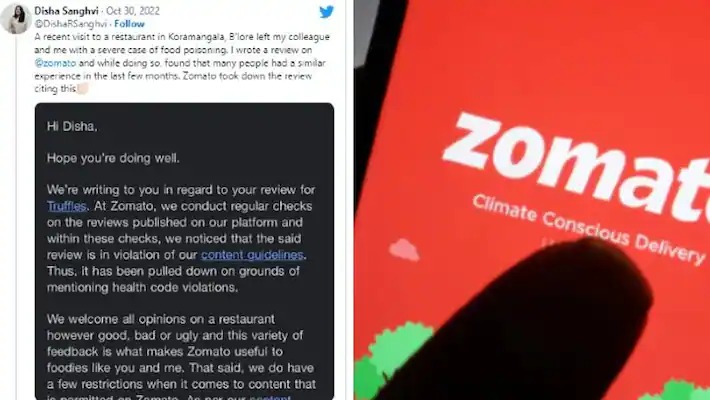 ഇവരുടെ സോഷ്യല് മീഡിയ വിഭാഗം ഇക്കാര്യത്തില് ഏറെ ജാഗ്രത പാലിക്കാറുണ്ട് എന്നതാണ് സത്യം.ഇപ്പോഴിതാ സൊമാറ്റോയ്ക്കെതിരായി ഒരു യുവതി സമാനമായ രീതിയില് പരാതിയുമായി രംഗത്തെത്തിയിരിക്കുകയാണ്. ബംഗലൂരു സ്വദേശിയായ ദിശ സംഗ്വി എന്ന യുവതിയാണ് ട്വിറ്ററിലൂടെ തന്റെ പരാതി അറിയിച്ചിരിക്കുന്നത്.ബംഗലൂരുവിലെ കോറമംഗലയിലെ ഒരു റെസ്റ്റോറന്റില് നിന്ന് ഭക്ഷണം കഴിച്ചതിനെ തുടര്ന്ന് ഭക്ഷ്യവിഷബാധയുണ്ടായതോടെ ഇക്കാര്യം സൊമാറ്റോ ആപ്പിലെ റിവ്യൂ കമന്റ് സെക്ഷനില് ഇവര് അറിയിച്ചിരുന്നുവത്രേ.
