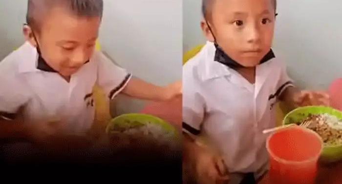 അവൻ ഒരു നിമിഷം ആശയക്കുഴപ്പത്തിലായെങ്കിലും പെട്ടെന്ന് ചെറിയൊരു പോളിത്തീൻ കവര്‍ അധ്യാപികക്ക് നേരെ നീട്ടി. താൻ വിളമ്പിയ ഇറച്ചിക്കഷ്ണങ്ങള്‍ കവറിനുള്ളില്‍ സൂക്ഷിച്ചിരിക്കുന്നതായി അധ്യാപികക്ക് മനസിലായി.കുട്ടി മാറ്റിവെച്ച ആ പൊതിക്കുള്ളില്‍ എന്താണെന്ന് തിരക്കിയ അധ്യാപികയോട് ‘ഇത് എന്‍റെ അമ്മയ്ക്കാണ്’ എന്നായിരുന്നു അവന്റെ മറുപടി. ഇറച്ചി കഴിക്കാൻ അധ്യാപിക നിർബന്ധിച്ചെങ്കിലും അമ്മയ്ക്ക് നല്‍കണമെന്ന് തന്നെയായിരുന്നു കുട്ടിയുടെ തീരുമാനം. കുട്ടിയുടെ തീരുമാനത്തെ അംഗീകരിച്ച അധ്യാപിക അവന്റെ കരുതലിനെയും ദയയെയും പ്രശംസിക്കുകയും ചെയ്തു.വീഡിയോ വളരെ പെട്ടെന്നാണ് വൈറലായത്.കുട്ടിയുടെ ഈ പ്രവൃത്തിയെ സ്നേഹത്തിന്റെ ഏറ്റവും നിർമലമായ ആവിഷ്കാരമെന്നാണ് പലരും വിശേഷിപ്പിച്ചത്.അധ്യാപികയുടെ സമീപനത്തെയും നെറ്റിസണ്‍സ് പ്രശംസിച്ചു. അവനെ വഴക്കുപറയുകയോ പരിഹസിക്കുകയോ ചെയ്യുന്നതിന് പകരം, ആ കുട്ടിയുടെ വികാരങ്ങളെ മുറിപ്പെടുത്താതെ വളരെ സൗമ്യമായാണ് അവർ സംസാരിച്ചത്.