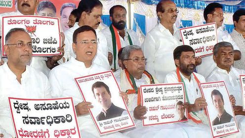 സിദ്ധരാമയ്യയുടെ നേതൃത്വത്തിൽനടന്ന പ്രതിഷേധത്തിൽ രൺദീപ് സിങ് സുർജേവാല, മുതിർന്നനേതാക്കളായ ദിനേഷ് ഗുണ്ടുറാവു, സലിം അഹമ്മദ് തുടങ്ങിയവർ പങ്കെടുത്തു. ബി.ജെ.പി. യെ വിമർശിച്ചുകൊണ്ടുള്ള പോസ്റ്ററുകൾ ഉയർത്തിയായിരുന്നു പ്രതിഷേധം. നൂറുകണക്കിന് പ്രവർത്തകർ പ്രതിഷേധത്തിൽ പങ്കെടുത്തു.