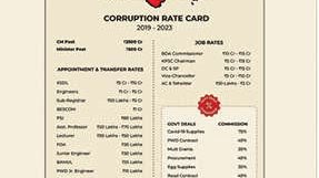 കോവിഡ് ചികിത്സാ ഉപകരണങ്ങൾ വാങ്ങിയതിൽ 75 ശതമാനം, പൊതുമരാമത്ത്-റോഡ് കരാറുകൾക്ക് 40 ശതമാനം, മഠങ്ങൾക്ക് അനുവദിച്ച ഗ്രാന്റ് ഇനത്തിലും സ്കൂൾ വിദ്യാർഥികൾക്ക് മുട്ട വിതരണം ചെയ്ത വകയിലും 30 ശതമാനം എന്നിങ്ങനെ കമ്മിഷൻ പറ്റിയെന്നാണ് ആരോപണം.കഴിഞ്ഞ നാലുവർഷത്തിനിടെ ആകെ 1.5 ലക്ഷം കോടി രൂപ സംസ്ഥാനത്തുനിന്ന് ബി.ജെ.പി. കവർന്നെന്നും അഴിമതി റേറ്റ് കാർഡിൽ പറയുന്നു.ബി.ജെ.പി.യുടെ ‘ഡബിൾ എൻജിൻ’ സർക്കാർ അവകാശവാദത്തെ പരിഹസിച്ച് ‘ട്രബിൾ എൻജിൻ’ സർക്കാർ എന്ന തലക്കെട്ടാണ് റേറ്റ്കാർഡിന് നൽകിയിരിക്കുന്നത്.
