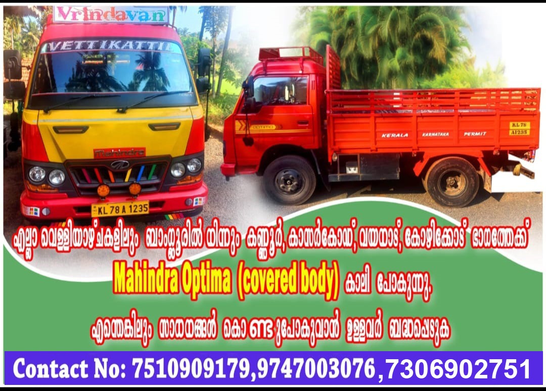 കേരളംപ്രധാന വാർത്തകൾബെംഗളൂരുഎല്ലാ വെള്ളിയാഴ്ചകളിലും ബാംഗ്ലൂരിൽ നിന്നും കണ്ണൂർ, വയനാട്, കോഴിക്കോട് ഭാഗത്തേക്ക് Mahindra Optima കാലി പോകുന്നു. by admin October 7, 2025 written by admin October 7, 2025 Contact number:75109091799747003076, 7306902751 എല്ലാ വെള്ളിയാഴ്ചകളിലും ബാംഗ്ലൂരിൽ നിന്നും കണ്ണൂർ, വയനാട്, കോഴിക്കോട് ഭാഗത്തേക്ക് Mahindra Optima കാലി പോകുന്നു.എന്തെങ്കിലും സാധനങ്ങൾ കൊണ്ടുപോകാൻ ഉള്ളവർ ബന്ധപ്പെടുക. Contact number:75109091799747003076, 7306902751 0 comment 0 FacebookTwitterPinterestEmail admin previous post ബെംഗളൂരു : മാട്രിമോണി സൈറ്റില് പരിചയപ്പെട്ട് സുഹൃത്തുക്കളായി; അധ്യാപികയെ ഭാര്യ എന്ന് വിശേഷിപ്പിച്ച് സ്നേഹം പിടിച്ചു പറ്റി തട്ടിയെടുത്തത് കോടികൾ next post ബെംഗളൂരു: സ്വകാര്യ കോളേജ് മേധാവിക്കെതിരെ ലൈംഗിക പീഡനത്തിന് കേസ് You may also like പുള്ളിപ്പുലിയുടെ ആക്രമണത്തിനിടെ കർഷകൻ കവുങ്ങിൽ കയറി രക്ഷപ്പെട്ടു; സംഭവം ബെൽത്തങ്ങാടിയിൽ January 17, 2026 രാവിലെ ആണ്കുട്ടികളായി വേഷം മാറി കറങ്ങുന്ന ശാലുവും നീലുവും, ആളൊഴിഞ്ഞാല്... January 17, 2026 മൂന്ന് കർണാടക, തമിഴ്നാട് ബോട്ടുകൾ കസ്റ്റഡിയിൽ January 17, 2026 ഇന്ന് രാത്രി 10 മുതൽ 18 വരെ മദ്യവിൽപ്പന നിരോധിച്ചു January 17, 2026 വൺവേ തെറ്റിക്കുന്ന മുതൽ ബെംഗളൂരു – മൈസൂരു എക്സ്പ്രസ് വേ... January 17, 2026 ബെംഗളൂരു മെട്രോ; ടിക്കറ്റ് നിരക്ക് വര്ധനയ്ക്കെതിരേ യാത്രക്കാര്; January 17, 2026 ബെംഗളൂരു മെട്രോ യെല്ലോ ലൈൻ മൂലം ട്രാഫിക് ബ്ലോക്ക് കുത്തനെ... January 16, 2026 ക്വിക് ഡെലിവറി:പാച്ചിൽ ഉപേക്ഷിക്കാനാകാതെ ഗിഗ് തൊഴിലാളികൾ January 16, 2026 സ്വർണവിലയിൽ ഇടിവ് ; ഇന്നത്തെ സ്വർണ വില January 16, 2026 മലപ്പുറത്ത് 16കാരി കൊല്ലപ്പെട്ട നിലയിൽ; പ്രായപൂർത്തിയാകാത്ത ആൺസുഹൃത്ത് കസ്റ്റഡിയിൽ January 16, 2026