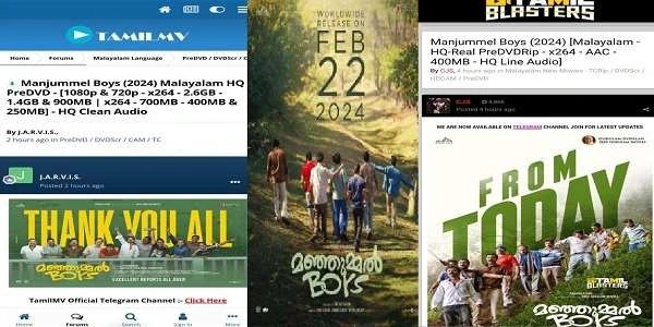 ഇന്ന് പുറത്തിറങ്ങിയ മഞ്ഞുമ്മല് ബോയ്സ് എന്ന ചിത്രത്തിൻ്റെ വ്യാജപതിപ്പ് തമിഴ് ബ്ലാസ്റ്റേഴ്സ്, തമിഴ് എംവി എന്നീ പതിവ് സൈറ്റുകളിള് പ്രത്യക്ഷപ്പെട്ടു. ചിത്രം ഇറങ്ങി മണിക്കൂറുകള്ക്കകമാണ് വ്യാജപ്പതിപ്പ് സൈറ്റുകളില് എത്തിയത്. ഒറ്റ ദിവസത്തെ അഡ്വാൻസ് ബുക്കിങ്ങിലൂടെ ഒന്നര കോടി രൂപയാണ് ചിത്രത്തെ ഏറെ പ്രതീക്ഷയോടെയാണ് കാത്തിരുന്നത്.
