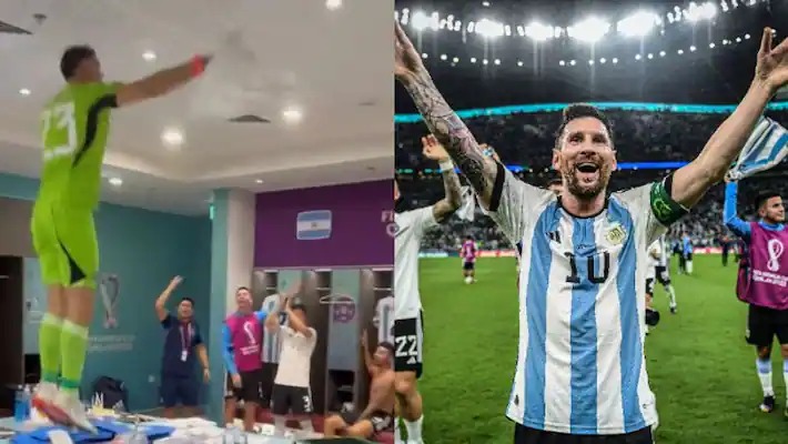 ഫുട്ബോളിലെ വിശ്വ കിരീടം നേടിയ മട്ടിലായിരുന്നു മത്സര ശേഷം അര്ജന്റീനന് ഡ്രസിംഗ് റൂമിലെ കാഴ്ചകള്. പരിശീലക സംഘവും താരങ്ങളും ചേര്ന്ന് പാട്ടും നൃത്തവുമായി വിജയം ആഘോഷിച്ചു. ഗോളി എമി മാര്ട്ടിനസും ഗോള് നേടിയ ഇതിഹാസ താരം ലിയോണല് മെസിയുമായിരുന്നു ആഘോഷങ്ങളിലെ ശ്രദ്ധാകേന്ദ്രം.