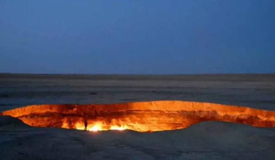 ലോകത്തിലെ തന്നെ ഏറ്റവും വിചിത്രവും ഭയാനകവുമായ കാഴ്ചകളിലൊന്നാണ് തുർക്ക്മെനിസ്ഥാനിലെ കാരാക്കും മരുഭൂമിയിലുള്ള ‘ദർവാസ ഗ്യാസ് ക്രേറ്റർ’.’നരകവാതില്’ (Door to Hell) എന്ന് ലോകം വിളിക്കുന്ന ഈ ഗർത്തം കഴിഞ്ഞ അഞ്ച് പതിറ്റാണ്ടുകളായി അണയാതെ കത്തുകയാണ്.54 വർഷം, ആണയാതെ കത്തുന്ന തീനൂറുകണക്കിന് വർഷങ്ങളായി കത്തുന്ന ഒരു പ്രകൃതി പ്രതിഭാസമല്ല ഇത്, മറിച്ച് 1971-ല് നടന്ന ഒരു മനുഷ്യസഹജമായ പിഴവിന്റെ ഫലം. അന്ന് സോവിയറ്റ് യൂണിയനിലെ ശാസ്ത്രജ്ഞർ ഈ മേഖലയില് പ്രകൃതിവാതകത്തിനായി ഡ്രില്ലിംഗ് നടത്തുന്നതിനിടെ ഭൂമി ഇടിഞ്ഞുതാഴ്ന്ന് വലിയൊരു ഗർത്തം രൂപപ്പെട്ടു. ഇതില് നിന്നും വിഷവാതകങ്ങള് , പ്രധാനമായും മീഥേൻ പുറത്തുവരാൻ തുടങ്ങിയതോടെ സമീപവാസികളുടെ ആരോഗ്യത്തെ ബാധിക്കുമെന്ന് ശാസ്ത്രജ്ഞർ ഭയപ്പെട്ടു. വാതകം കത്തിച്ചു തീർക്കുകയാണ് ഇതിന് പരിഹാരമെന്ന് കരുതിയ അവർ ഗർത്തത്തിന് തീ കൊടുത്തു.