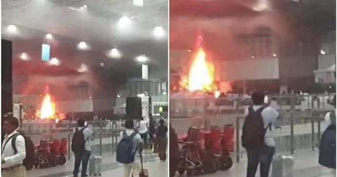തീ പൂര്‍ണമായു അണച്ചെന്നും യാത്രക്കാരെയെല്ലാം സുരക്ഷിതമായി ഒഴിപ്പിച്ചെന്നും വിമാനത്താവള അധികൃതര്‍ അറിയിച്ചു. രാത്രി 9.12നാണ് തീയും പുകയും ഉയര്‍ന്നത്. 9.40ഓടെ തീ പൂര്‍ണമായും അണച്ചെന്ന് അധികൃതര്‍ അറിയിച്ചു. പുക നീങ്ങിയതോടെ ചെക് ഇൻ കൗണ്ടറിന്റെ പ്രവര്‍ത്തനം പുനഃരാരംഭിച്ചു.