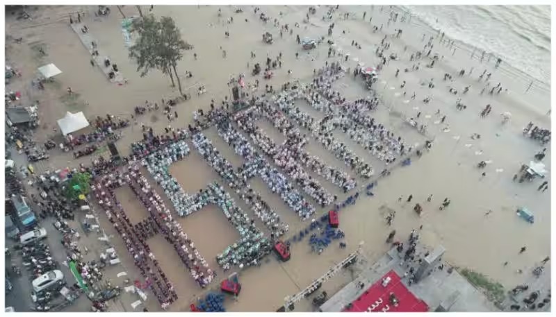 കോഴിക്കോട്: ഒരേ പേരുള്ള നിരവധി പേർ ഉണ്ടാകും ചില നാടുകളിൽ. ഇത്തരം ആളുകളുടെ എണ്ണം വർ​ദ്ധിക്കുമ്പോൾ കൗതുകവും കൂടും. അങ്ങനെയൊരു കൗതുക കാഴ്ചയാണ് കഴിഞ്ഞ ദിവസം കോഴിക്കോട് ബീച്ചിൽ അരങ്ങേറിയത്. ഇവിടെ ഒത്തുകൂടിയത് അഷ്റഫ് മാരാണ്. കേരളത്തിലെ 14 ജില്ലകളിൽ നിന്നുമുള്ള അഷ്റഫുമാാർ. അവരൊന്നിച്ച് നിന്ന് ബീച്ചിൽ അഷ്റഫ് എന്ന് എഴുതുക കൂടി ചെയ്തപ്പോൾ കാഴ്ചക്കാർക്കത് ആവേശമായി.
