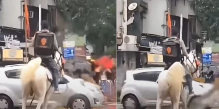 Home Featured കസ്റ്റമര്‍ വിശന്നിരിക്കേണ്ട: കനത്ത മഴയില്‍ കുതിരപ്പുറത്തേറി ഭക്ഷണമെത്തിച്ച് ഡെലിവറി ബോയി, അഭിനന്ദനം