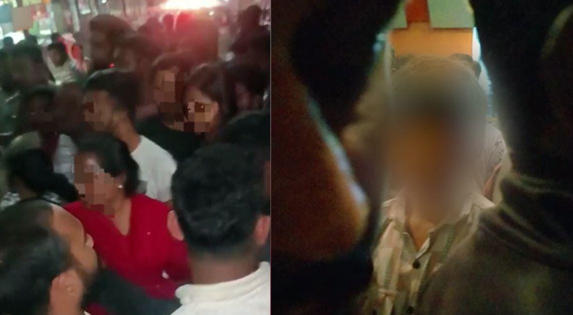ഈസമയം തൊട്ടടുത്ത ശുചിമുറിയിലിരുന്ന് ഒരാൾ മൊബൈൽ ഫോണിൽ ദൃശ്യങ്ങൾ പകർത്തുന്നതു ശ്രദ്ധയിൽപെട്ടു. ബഹളം വച്ചതോടെ ആളുകൾ ഓടിയെത്തി യുവാവിനെ പിടികൂടി പരിശോധിച്ചു. മൊബൈൽഫോണിൽ നിരവധി സ്ത്രീകളുടെ ശുചിമുറി ദൃശ്യങ്ങൾ കണ്ടെത്തി. ഇതോടെ ആൾക്കൂട്ട മർദ്ദനമുണ്ടായി.വിവരമറിഞ്ഞെത്തിയ പൊലീസ് തിയേറ്റർ ജീവനക്കാരനായ പ്രായപൂർത്തിയാകാത്തയാളെ കസ്റ്റഡിയിലെടുത്തു. മറ്റൊരു ജീവനക്കാരൻ രാജേഷിന്റെ അറിവോടയാണു ദൃശ്യങ്ങൾ പകർത്തിയെന്ന മൊഴിയുടെ അടിസ്ഥാനത്തിൽ ഇയാൾക്കെതിരെയും കേസെടുത്തു. പിടിയിലായ ആൾ ഉത്തരേന്ത്യൻ സ്വദേശിയാണന്നും ഇയാളെ മർദ്ദിച്ചവർക്കെതിരെ കേസെടുക്കുമെന്നും മഡിവാള പൊലീസ് അറിയിച്ചു.