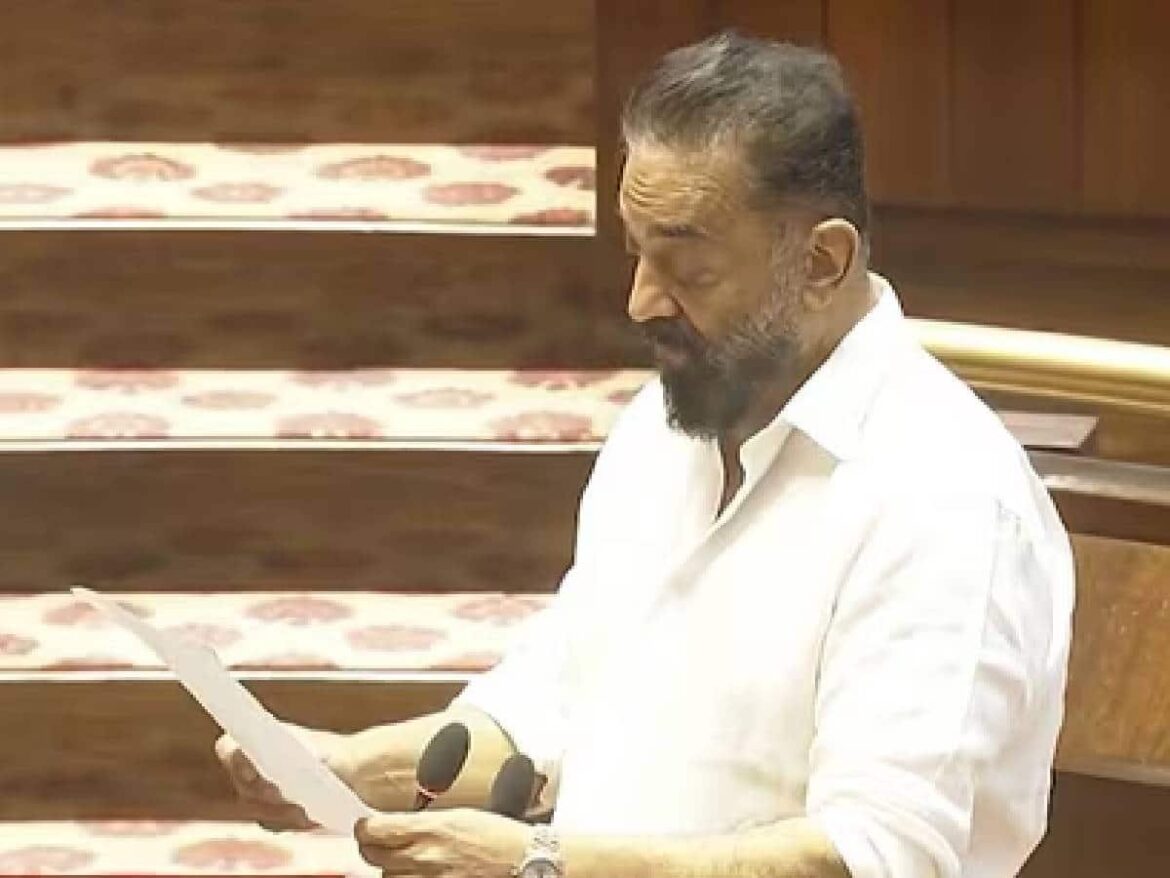 പാർലമെന്റില് അരങ്ങേറ്റം കുറിച്ച് നടനും മക്കള് നീതി മയ്യം നേതാവുമായ കമല് ഹാസൻ. രാജ്യസഭാ എംപിയായി കമല് ചുമതല ഏറ്റെടുത്തത് തമിഴില് സത്യപ്രതിജ്ഞ ചെയ്ത ശേഷമാണ്.സത്യപ്രതിജ്ഞയ്ക്ക് മുന്നോടിയായി സംസാരിച്ച അദ്ദേഹം താൻ സത്യപ്രതിജ്ഞ ചെയ്ത് പേര് രജിസ്റ്റർ ചെയ്യാൻ പോകുന്നുവെന്നും ഒരു ഇന്ത്യക്കാരൻ എന്ന നിലയില് തന്റെ കടമ നിർവഹിക്കുമെന്നും അദ്ദേഹം പറഞ്ഞു.ഡിഎംകെയുടെ നേതൃത്വത്തിലുള്ള സഖ്യത്തിന്റെ പിന്തുണയോടെ ജൂണില് കമല്ഹാസൻ രാജ്യസഭയിലേക്ക് എതിരില്ലാതെ തിരഞ്ഞെടുക്കപ്പെട്ടിരുന്നു. 2024ലെ ലോക്സഭാ തിരഞ്ഞെടുപ്പിന് മുന്നോടിയായി മക്കള് നീതി മയ്യം (എംഎൻഎം) പാർട്ടി ഡിഎംകെ നേതൃത്വത്തിലുള്ള മുന്നണിയില് ചേർന്നിരുന്നു.