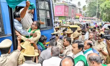 തമിഴ്നാടിന് കാവേരി ജലം വിട്ടുനല്കുന്നതിനെതിരെ മൈസൂരുവില് പ്രതിഷേധിച്ച കര്ഷകരെ പൊലീസ് നീക്കുന്നു