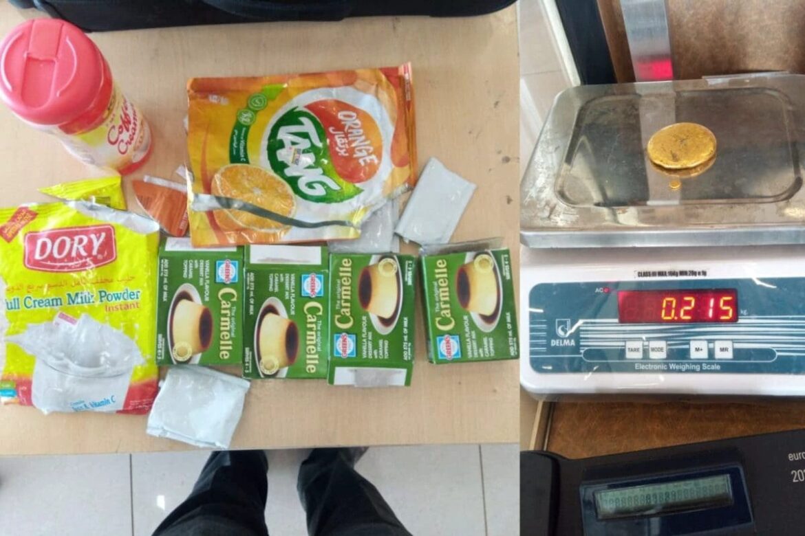 സ്വര്ണ മിശ്രിതം പൊടിയാക്കിയ ശേഷം പാല്പ്പൊടി, കാരെമെല് പൗഡര്, കോഫി ക്രീം പൗഡര്, ഓറഞ്ച് ടാങ് പൗഡര് എന്നിവയില് കലര്ത്തി അതിവിദഗ്ധമായാണ് കടത്താന് ശ്രമിച്ചത്. 11 ലക്ഷത്തോളം രൂപ വില വരുന്ന സ്വര്ണമാണ് കണ്ടെടുത്തത്.