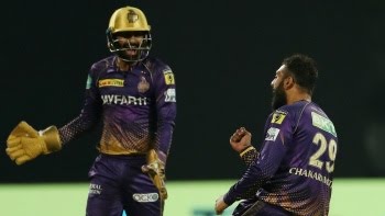 83 റണ്സിന്റെ ഒന്നാം വിക്കറ്റ് കൂട്ടുകെട്ടും വീണു.ജഗദീശന്റെ ഓവറില് തന്നെ റോയിയും മടങ്ങിയതോടെ കൊല്ക്കത്തക്ക് ഇരട്ടപ്രഹരമായി. 29 പന്തില് 56 റണ്സാണ് റോയ് നേടിയത്. നാല് ഫോറും അഞ്ച് സിക്സും താരത്തിന്റെ ഇന്നിങ്സില് ഉള്പ്പെട്ടു. പിന്നീട് നായകന് നിതീഷ് റാണയും വെങ്കിടേഷ് അയ്യരും ചേര്ന്ന് ഒന്നില് നിന്ന് തുടങ്ങുകയായിരുന്നു. അയ്യര് നിലയുറപ്പിച്ച് കളിച്ചപ്പോള് റാണ സ്കോറിങ്ങിന് വേഗം കൂട്ടി.മൂന്നാം വിക്കറ്റില് 80 റണ്സാണ് ഇരുവരും ചേര്ത്തത്. പക്ഷെ വനിന്ദു ഹസരങ്കയുടെ 18-ാം ഓവറിലെ വരവില് റാണയും അയ്യരും പവലിയനിലെത്തി.