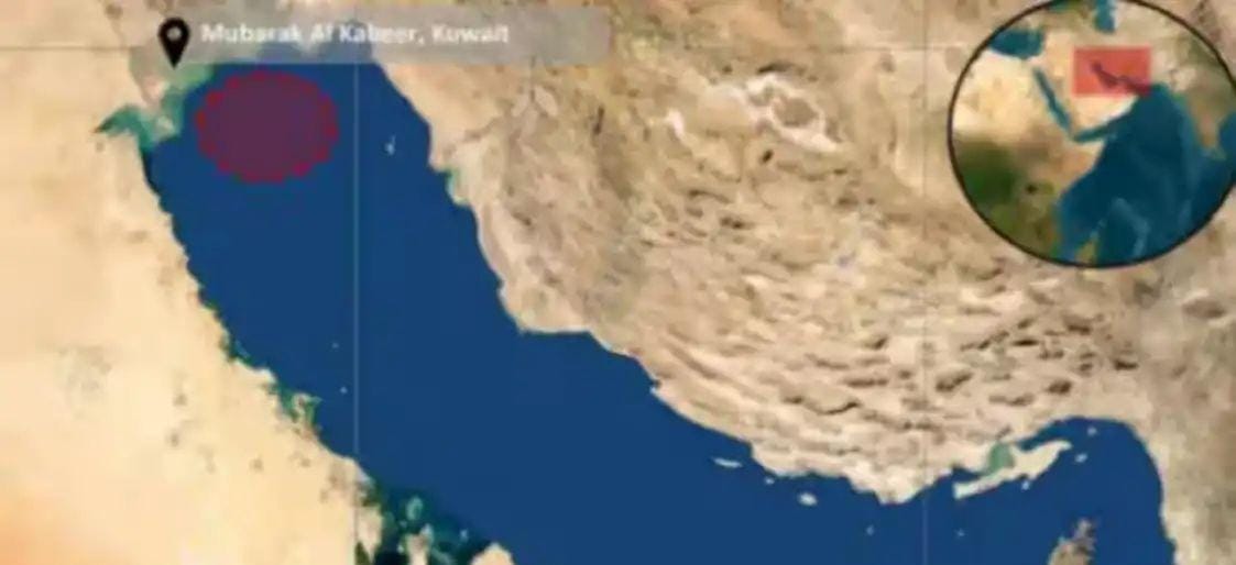 മുബാറക് അല് കബീർ തുറമുഖത്ത് നിന്ന് ഏകദേശം 60 കിലോമീറ്റർ (37 മൈല്) അകലെയാണ് സ്ഫോടനം നടന്നതെന്നും മന്ത്രാലയം വ്യക്തമാക്കി.അതേസമയം സ്ഫോടനത്തെത്തുടർന്ന് ഒരു കാർഗോ ടാങ്കില് നിന്ന് എണ്ണ കടലിലേക്ക് ഒഴുകിക്കൊണ്ടിരിക്കുകയാണ്. ഇത് കടലിലെ പരിസ്ഥിതിയെ ദോഷകരമായി ബാധിക്കാൻ സാധ്യതയുണ്ട്. ഗുരുതരമായ പാരിസ്ഥിതിക ആഘാതമുണ്ടാക്കിയേക്കാമെന്ന് ബ്രിട്ടീഷ് മാരിടൈം സെക്യൂരിറ്റി ഏജൻസി മുന്നറിയിപ്പ് നല്കി.