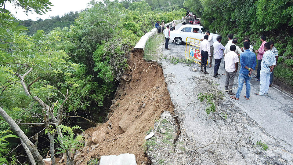 മൈസൂരു ചാമുണ്ഡി ഹിൽസ് റോഡിൽ മണ്ണിടിഞ്ഞതോടെ ഗതാഗതത്തിന് നിയന്ത്രണമേർപ്പെടുത്തി. കഴിഞ്ഞ ദിവസത്തെ കനത്ത മഴയിൽ മലമുകളിൽ നിന്ന് വെള്ളം കുത്തിയൊലിച്ചതോടെയാണ് ചുരം റോഡിൽ നന്ദി പ്രതിമയ്ക്ക് സമീപം റോഡ് ഇടിഞ്ഞത്. ഇതോടെ വ്യൂ പോയിന്റിൽ വാഹനങ്ങൾ നിർത്തുന്നതു നിരോധിച്ചിട്ടുണ്ട്. കഴിഞ്ഞ വർഷം ഒക്ടോബറിലും നവംബറിലും സമാനമായ രീതിയിൽ ചുരം റോഡിൽ മണ്ണിടിഞ്ഞിരുന്നു. അറ്റകുറ്റപ്പണികൾക്കു ശേഷം മാസങ്ങൾക്ക് ശേഷമാണ് ഇതിലൂടെ ഗതാഗതം പൂർണതോതിൽ ആരംഭിച്ചത്.