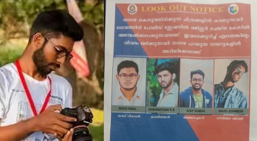 പൂക്കോട് വെറ്ററിനറി കോളജില് സിദ്ധാർഥനെ ആക്രമിച്ചവരില് നാല് പ്രതികള്ക്കെതിരെ ലുക്ക്ഔട്ട് നോട്ടീസ്. സൗദ് റിസാല്, കാശിനാഥൻ, അജയ്കുമാർ, സിൻജോ ജോണ് എന്നിവർക്കാണ് ലുക്ക്ഔട്ട് നോട്ടീസ്.