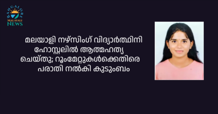 ബെംഗളൂരു: നഗരത്തിലെ കോളേജ് ഹോസ്റ്റലിൽ 21 കാരിയായ നഴ്സിംഗ് വിദ്യാർത്ഥിനി ആത്മഹത്യ ചെയ്ത ചെയ്തു. നാല് സഹതാമസക്കാരുടെ പീഡനമാണ് വിദ്യാർത്ഥിനി ആത്മഹത്യ ചെയ്യാൻ കാരണമായതെന്ന് ആരോപിച്ച് വീട്ടുകാർ പോലീസിൽ പരാതി നൽകി.