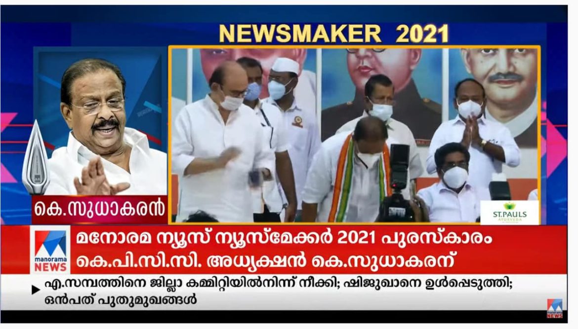 2017ല് ഇടതു സര്ക്കാറിന്റെ കടിഞ്ഞാണായി പ്രവര്ത്തിച്ച കാനം രാജേന്ദ്രനായിരുന്നു പുരസ്ക്കാരം. പിന്നീട് കെ കെ ശൈലജയിലൂടെ കഴിഞ്ഞ വര്ഷത്തെ ന്യൂസ് മേക്കര് പുരസ്ക്കാരവും ഒരു രാഷ്ട്രീയ പ്രവര്ത്തക നേടി. ഇക്കുറി കെപിസിസി അധ്യക്ഷന് കെ സുധാകരന് മനോരമ ന്യൂസിന്റെ ന്യൂസ് മേക്കര് പുരസ്ക്കാരം നേടുമ്ബോള് ആ പുരസ്ക്കാരം ലഭിക്കുന്ന ആദ്യത്തെ കോണ്ഗ്രസ് നേതാവ് എന്ന പ്രത്യേകത കൂടിയാണ്. ഓണ്ലൈന് വോട്ടെടുപ്പില് മറ്റുള്ളവരേക്കാള് വലിയ മാര്ജിനില് വോട്ടു നേടിയാണ് സുധാകരന് വാര്ത്താ താരമായത്.