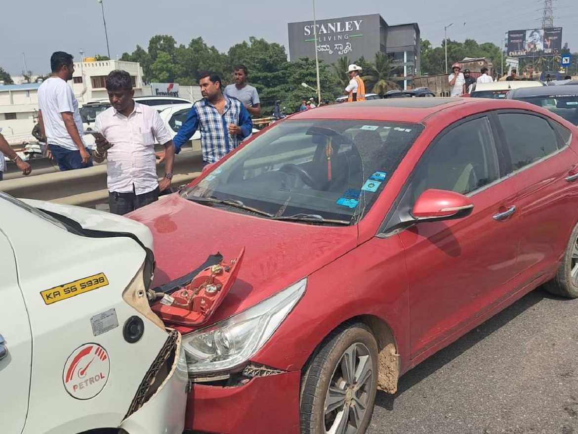ബംഗളൂരു:ബംഗളൂരു വിമാനത്താവള റോഡില് ചിക്കജാല മേല്പാലത്തിനുസമീപം വാഹനങ്ങള് കൂട്ടിയിടിച്ച് ആറു കാറുകള്ക്ക് കേടുപാട് സംഭവിച്ചു.അപകടത്തെത്തുടര്ന്ന് റോഡില് ഗതാഗത തടസ്സം നേരിട്ടു. നിരവധിപേര്ക്ക് പരിക്കേറ്റു. ആളപായമില്ല. ചിക്കജാല പൊലീസ് സംഭവസ്ഥലത്തെത്തി കാറുകള് സംഭവസ്ഥലത്തുനിന്ന് നീക്കി വാഹന ഗതാഗതം പുനഃസ്ഥാപിച്ചു. ഒമ്നി വാൻ പെട്ടെന്ന് ലൈൻമാറ്റി ബ്രേക്കിട്ടതാണ് അപകടത്തിനിടയാക്കിയതെന്ന് പൊലീസ് പറഞ്ഞു.