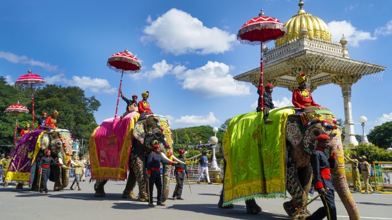 ഇത്തവണ സവാരിക്ക് 14 ആനകളെയാണ് ഉൾപ്പെടുത്തിയി രിക്കുന്നതെങ്കിലും 17 ആനകളെ കൊട്ടാരത്തിലെത്തിക്കും. ചാമുണ്ഡി ദേവിയുടെ സുവർണ ഹൗഡ പല്ലക്കിലേറ്റുന്ന അഭിമന്യൂ, അർജുന, മഹേന്ദ്ര, ധനന്ജയ ഗോപാലസ്വാമി, വിക്രം, വേരി ചെത, ലക്ഷ്മി എന്നീ ആനകളാണ് ആദ്യഘട്ടത്തിൽ മൈസൂരുവിലെത്തുന്നത്. വിജയ, ഗണേശ, സുഗ്രീവ, ഭീമ, അജയ പാർഥസാരഥി എന്നീ ആനകൾ ഈ മാസം അവസാനം മൈസൂരുവിലെത്തും.