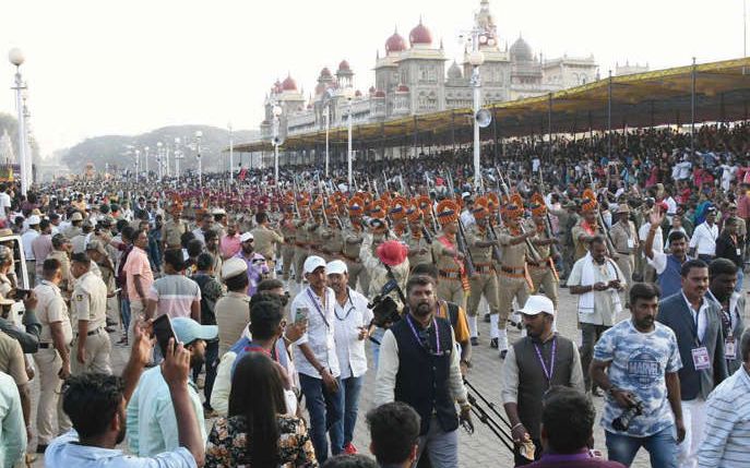 കൊട്ടാരത്തിൽനിന്ന് തുടങ്ങിയ ജംബൂസവാരി അഞ്ചരക്കിലോമീറ്റർ സഞ്ചരിച്ച് ബെന്നിമണ്ഡപത്തിൽ അവസാനിച്ചു. 14 ആനകൾ അണിനിരന്നു. അഭിമന്യു എന്ന ആനയാണ് സുവർണ സിംഹാസനത്തിൽ സ്ഥാപിച്ച ചാമുണ്ഡേശ്വരി വിഗ്രഹമേറ്റിയത്. നാലാംതവണയാണ് അഭിമന്യു 750 കിലോയോളം ഭാരമുള്ള വിഗ്രഹമേറ്റുന്നത്.31 ജില്ലകളുംസർക്കാർവകുപ്പുകളും ചേർന്ന് തയ്യാറാക്കിയ 49 നിശ്ചലദൃശ്യങ്ങളും കലാകാരന്മാരുടെ 95 സംഘങ്ങൾ അവതരിപ്പിച്ച കലാരൂപങ്ങളും ജംബൂസവാരിക്ക് നിറപ്പകിട്ടേകി.