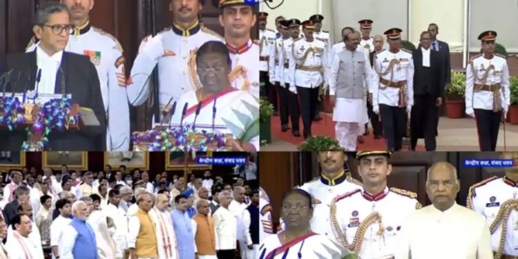 ദില്ലി; ഇന്ത്യയുടെ പതിനഞ്ചാമത് രാഷ്ട്രപതിയായി ദ്രൗപദി മുര്മു സത്യപ്രതിജ്ഞ ചെയ്ത് അധികാരമേറ്റു.രാവിലെ 10.15നായിരുന്നു സത്യപ്രതിജഞ.ചീഫ് ജസ്റ്റീസ് എം വി രമണ സത്യവാചകം ചൊല്ലിക്കൊടുത്തു.സത്യപ്രതിജ്ഞക്കു ശേഷം രാഷ്ട്രപതി രാജ്യത്തെ അഭിസംബോധന ചെയ്തു.
