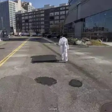 ഗൂഗിള് മാപ്സ് ഉപയോക്താക്കള് ഹസ്മത്ത് സ്യൂട്ട് ധരിച്ച കൈകാലുകളില്ലാത്ത, തലയില്ലാത്ത മനുഷ്യന്റെ ചില വിചിത്ര ചിത്രങ്ങള് കണ്ടെത്തിയിരിക്കുകയാണ്. റോഡിനു നടുവില് പല പല പോസുകളിലായാണ് രൂപത്തെ കണ്ടിരിക്കുന്നത്. ഗൂഗിള് സ്ട്രീറ്റ് വ്യൂ ആയതുകൊണ്ട് ഇത് ഗ്രാഫിക് ചിത്രമാണോ എന്ന സംശയം അസ്ഥാനത്താണ്.