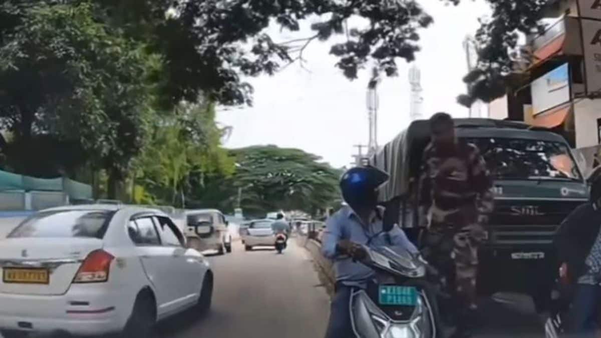 ശകാരത്തിനൊപ്പം സ്കൂട്ടര് യാത്രക്കാരന്റെ തലയ്ക്ക് ഉദ്യോഗസ്ഥന് അടിക്കുന്നതും കാണാം. വാഹനം നിര്ത്തിയിട്ട് ഇരുവരും തമ്മിലുള്ള വാക്കുതര്ക്കത്തെ തുടര്ന്ന് ഉടന്തന്നെ അവിടേക്ക് ട്രാഫിക് പോലീസ് എത്തുന്നതും കാണാം. സ്കൂട്ടര് യാത്രക്കാരന്റെ ഈ പെരുമാറ്റത്തെ വലിയ രീതിയില് വിമര്ശിക്കുകയാണ് സോഷ്യല് മീഡിയ.