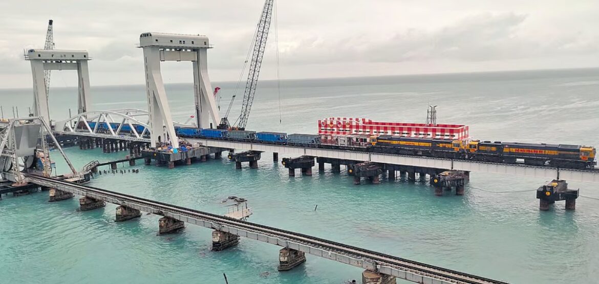 ചെന്നൈ : പാമ്പൻ പാലം പ്രധാനമന്ത്രി നരേന്ദ്രമോദി ഞായറാഴ്ച ഉച്ചയ്ക്ക് 12.45-ന് ഉദ്ഘാടനംചെയ്യും.രാമേശ്വരത്തെ വൻകരയുമായി ബന്ധിപ്പിക്കുന്ന കടൽപ്പാലമായ പാമ്പൻപാലത്തെ പ്രധാനമന്ത്രി റിമോട്ടുപയോഗിച്ച് ലംബമായി ഉയർത്തിയാണ് ഉദ്ഘാടനംചെയ്യുക.ചടങ്ങിൽ രാമേശ്വരത്തുനിന്ന് പാമ്പൻപാലത്തിലൂടെ താംബരത്തേക്കുള്ള പുതിയ തീവണ്ടി ഉദ്ഘാടനംചെയ്യും.വാലജബാദ്-റാണിപ്പേട്ട് (എൻഎച്ച്-40) ദേശീയപാതയ്ക്ക് പ്രധാനമന്ത്രി തറക്കല്ലിടും.