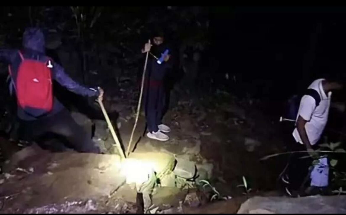 സ്ഥിതിഗതികൾ അറിഞ്ഞ ബാലൂർ പൊലീസ് സബ് ഇൻസ്പെക്ടർ ദിലീപ് കുമാറും സ്നേക്ക് ആരിഫും വനംവകുപ്പ് ഉദ്യോഗസ്ഥരും നാട്ടുകാരും കാട്ടിൽ കയറി ആറ് മണിക്കൂർ തിരച്ചിൽ നടത്തി.പുലർച്ച രണ്ട് മണിയോടെ വിദ്യാർഥികളെ കണ്ടെത്തി, എല്ലാവരെയും സുരക്ഷിതമായി തിരികെ കൊണ്ടുവന്നു. ട്രക്കിങ് നടത്തിയവരിൽ മെഡിക്കൽ വിദ്യാർഥികളും വിവിധ കോളജുകളിൽനിന്നുള്ള മറ്റുള്ളവരും ഉണ്ടായിരുന്നു. അവരെ അവരുടെ വാഹനത്തിൽ ചിത്രദുർഗയിലേക്ക് അയച്ചതായി പൊലീസ് പറഞ്ഞു.