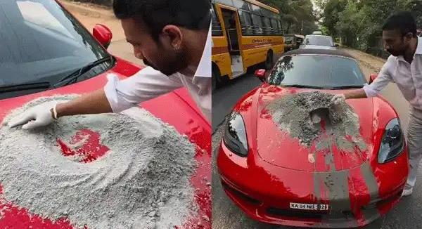 റോഡിലെ കുഴികള് പലപ്പോഴും പൊതുജനങ്ങള്ക്ക് കടുത്ത ഭീഷണിയാകാറുണ്ട്. ഇപ്പോഴിതാ റോഡുകളുടെ ഈ ഒരു ശോചനീയാവസ്ഥയിലേക്ക് അധികാരികളുടെ ശ്രദ്ധ ക്ഷണിക്കാന് വ്യത്യസ്തമായ ഒരു പ്രതിഷേധവുമായി രംഗത്തെത്തിയിരിക്കുകയാണ് ബെംഗളൂരു സ്വദേശിയായ അഖില് യാദവ്.തന്റെ കോടിക്കണക്കിന് രൂപ വിലമതിക്കുന്ന ചുവന്ന പോര്ഷെ കാറിന്റെ ബോണറ്റ് സിമന്റ് കൂട്ടാനായി ഉപയോഗിച്ചാണ് അദ്ദേഹം വാര്ത്തകളില് ഇടംപിടിച്ചത്. ഇതിന്റെ വീഡിയോ ഇപ്പോള് സമൂഹമാധ്യമങ്ങളില് വന്തോതില് പ്രചരിക്കുകയാണ്.ചുവന്ന പോര്ഷെ കാറില് വന്നിറങ്ങിയ അഖില്, സിമന്റും മണലുമടക്കമുള്ള സാധനങ്ങള് കാറില് നിന്ന് പുറത്തെടുത്തു. തുടര്ന്ന് തന്റെ കോട്ടും കണ്ണടയും സഹായിയെ ഏല്പ്പിച്ച ശേഷം, കാറിന്റെ ബോണറ്റിലിട്ട് സിമന്റ് മിശ്രിതം തയ്യാറാക്കി.