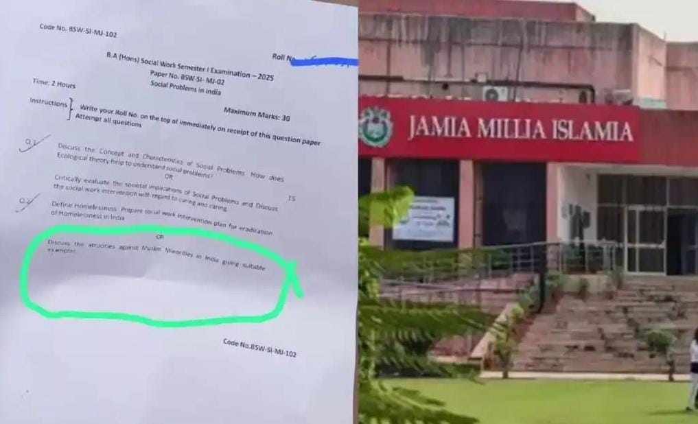 ന്യൂഡൽഹി : പരീക്ഷാ ചോദ്യപേപ്പറില് ഇന്ത്യയിലെ മുസ്ലിംകള്ക്കെതിരായ അതിക്രമങ്ങളെക്കുറിച്ചുള്ള ചോദ്യം ഉള്പ്പെടുത്തിയതില് ഡല്ഹി ജാമിഅ മില്ലിയ ഇസ്ലാമിയ അധ്യാപകന് സസ്പെൻഷൻ.പ്രൊഫസർ വീരേന്ദ്ര ബാലാജി ഷഹാരെയെയാണ് സർവകലാശാല സസ്പെൻഡ് ചെയ്തത്. ബിഎ ഒന്നാംവർഷ സോഷ്യല് വർക്ക് കോഴ്സ് പരീക്ഷയിലായിരുന്നു ചോദ്യം.’ഇന്ത്യയില് മുസ്ലിംകള്ക്കെതിരായ അതിക്രമങ്ങള് ഉദാഹരണങ്ങള് സഹിതം വിശദീകരിക്കുക’- എന്നായിരുന്നു ചോദ്യപേപ്പറിലെ അവസാന ചോദ്യം. 30 മാർക്കിനുള്ള ഉപന്യാസ ചോദ്യമായിരുന്നു ഇത്. ചോദ്യം ഉള്പ്പെടുത്തിയത് സംബന്ധിച്ച് നിരവധി പരാതികള് വന്നതിന് പിന്നാലെയാണ് നടപടിയെന്നാണ് സർവകലാശാലാ അധികൃതരുടെ ഭാഷ്യം.