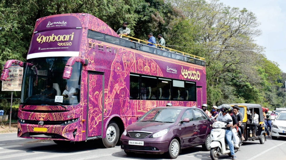 ഉയരത്തില് ഇരുന്ന് നഗരത്തിന്റെ മനോഹാരിത നേരിട്ട് കാണാം എന്നതാണ് ഇതിന്റെ ഏറ്റവും വലിയ പ്രത്യേകത. ഓരോ ബസിലും 40 പേര്ക്ക് വീതം ഒരേസമയം യാത്ര ചെയ്യാം.രവീന്ദ്ര കലാക്ഷേത്രയില് നിന്നാണ് യാത്ര ആരംഭിക്കുന്നത്. തുടര്ന്ന് ഈ യാത്ര കോര്പ്പറേഷന് സര്ക്കിള്, കസ്തൂര്ബ റോഡ്, വിശ്വേശ്വരയ്യ മ്യൂസിയം, ചിന്നസ്വാമി സ്റ്റേഡിയം, ഹൈക്കോടതി, വിധാന് സൗധ തുടങ്ങി നഗരത്തിലെ പ്രധാന ഇടങ്ങളിലൂടെയാണ് കടന്നുപോകുന്നത്. നിലവില് ഇതൊരു പൈലറ്റ് സര്വീസ് ആണെങ്കിലും വരും ദിവസങ്ങളില് കൂടുതല് സ്ഥലങ്ങളിലേക്ക് വ്യാപിപ്പിക്കാനാണ് അധികൃതരുടെ തീരുമാനം. രാവിലെ 10 മണി മുതല് വൈകുന്നേരം 5:30 വരെയാണ് ഈ സര്വീസുകള് ലഭ്യമാകുക.വെറും 180 രൂപയുടെ ടിക്കറ്റെടുത്താല് ഒരു ദിവസം മുഴുവന് ഈ ബസുകളില് നഗരം ചുറ്റിക്കാണാം എന്നതാണ് മറ്റൊരു ആകര്ഷണം. ഹോപ്പ് ഓണ് – ഹോപ്പ് ഓഫ് രീതിയിലായതുകൊണ്ട് ഇഷ്ടമുള്ള സ്റ്റോപ്പുകളില് ഇറങ്ങി കാഴ്ചകള് കണ്ട ശേഷം അടുത്ത ബസില് യാത്ര തുടരാനും സാധിക്കും. ടിക്കറ്റുകള് ഓണ്ലൈന് വഴിയോ നേരിട്ടോ ബുക്ക് ചെയ്യാവുന്നതാണ്. ബെംഗളൂരുവിന്റെ പഴയകാല പ്രതാപവും പുതിയ കാലത്തെ സ്പന്ദനങ്ങളും ഒരുപോലെ ആസ്വദിക്കാന് ആഗ്രഹിക്കുന്നവര്ക്ക് ഈ ഡബിള് ഡെക്കര് ബസ് യാത്ര തീര്ച്ചയായും വേറിട്ടൊരു അനുഭവമായിരിക്കും.ഇന്ന് രവീന്ദ്ര കലാ ക്ഷേത്രയില് മന്ത്രി എച്ച്.കെ. പാട്ടീല് മൂന്ന് ഡബിള് ഡെക്കര് ബസുകള് ഫ്ളാഗ് ഓഫ് ചെയ്യും. റൂട്ടിലെ നിര്ദ്ദിഷ്ട സ്ഥലങ്ങളില് ബസ് എത്തുമ്പോള് വിനോദസഞ്ചാരികള്ക്ക് ഓഡിയോ-ഗൈഡഡ് കമന്ററി ലഭിക്കും. സംസ്ഥാനത്തെ കലാരൂപങ്ങള്, വന്യജീവികള്, വിനോദസഞ്ചാര കേന്ദ്രങ്ങള് എന്നിവയുടെ ചിത്രങ്ങള് കൊണ്ടാണ് അംബാരി ഡബിള് ഡെക്കര് ബസ് അലങ്കരിച്ചിരക്കുന്നത്. ബെംഗളൂരു മെട്രോപൊളിറ്റന് ട്രാന്സ്പോര്ട്ട് കോര്പ്പറേഷന് (ബിഎംടിസി) ഏതാനും വര്ഷങ്ങള്ക്ക് മുമ്പ് ഡബിള് ഡെക്കര് ബസ് വീണ്ടും അവതരിപ്പിക്കാന് ശ്രമിച്ചെങ്കിലും പരാജയപ്പെട്ടിരുന്നു.