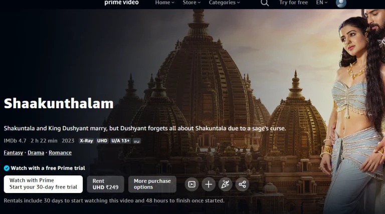 ശാകുന്തളം ആമസോണ്‍ പ്രൈമില്‍ റിലീസ് ചെയ്തു