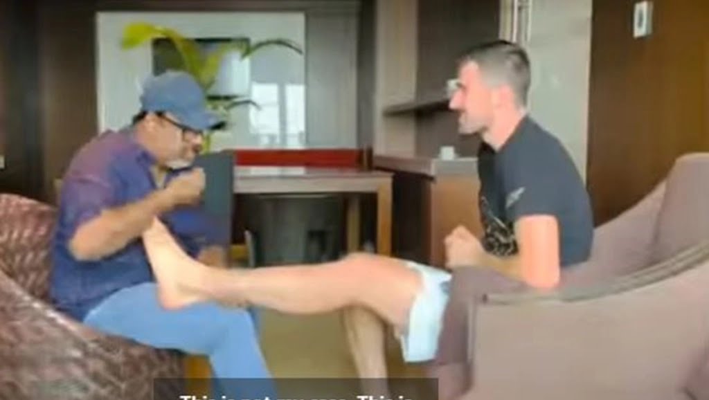 ഇത് കേരളത്തിന്റെ മുഴുവന് ഉമ്മയാണ് എന്ന് പറഞ്ഞായിരുന്നു ഇടത് കാല് തന്റെ മടിയില് വയ്ക്കാന് പറയുകയും താരത്തിന്റെ കാലില് ഷൈജു ദാമോദരന് ചുംബിച്ചത്. ഇതാണ് വിമര്ശനത്തിനിടയാക്കിയത്. കാല്പാദത്തില് ചുംബിക്കണമെങ്കില് അത് സ്വന്തം പേരില് ചെയ്താല് മതിയെന്നും കേരളത്തിന്റെ പേരില് ചെയ്യേണ്ടെന്നുമാണ് വിമള്ശനം ഉയര്ന്നത്.