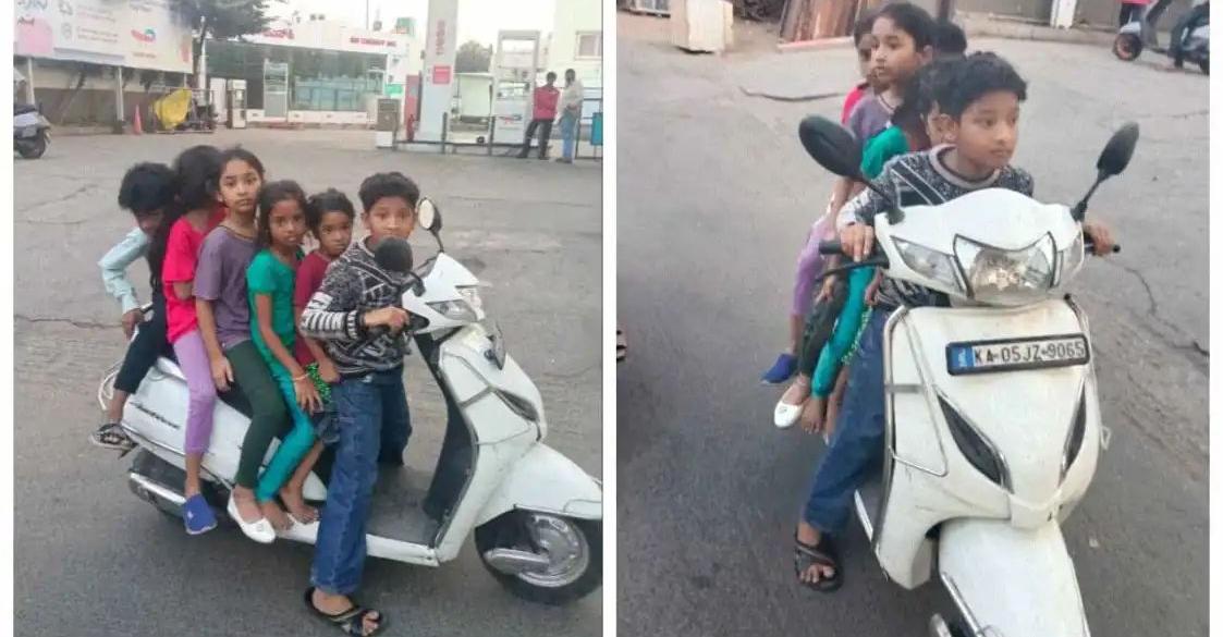 ബെംഗളൂരു നഗരത്തിലൂടെ ആറ് കുട്ടികള്‍ സ്കൂട്ടറില്‍; അച്ഛനമ്മമാരെ ഉടൻ അറസ്റ്റ് ചെയ്യണമെന്ന് രോഷപ്രകടനം