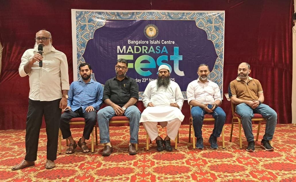ബാംഗ്ലൂർ: ബാംഗ്ലൂർ ഇസ്ലാഹി സെന്ററിൻ്റെ നേതൃത്വത്തിൽ ശിവാജിനഗർ, ഒകാലിപുരം, ഇലക്ട്രോണിക് സിറ്റി മദ്രസകളുടെ സംയുക്തമായി സംഘടിപ്പിച്ച മദ്രസ ഫെസ്റ്റ് 2025–26 ആവേശകരമായി നടത്തി. ഇസ്ലാമിക് സോങ്, സ്പീച്ച്, സ്റ്റോറി ടെല്ലിംഗ്, സ്കിറ്റ്, ആക്ഷൻ സോങ്, സംഭാഷണം തുടങ്ങിയ ഇനങ്ങളിൽ വിദ്യാർത്ഥികൾ പ്രകടിപ്പിച്ച കഴിവുകൾ പ്രേക്ഷകരുടെ പ്രശംസ നേടി.മദ്രസ കോഓർഡിനേറ്റർ സൽമാൻ സ്വാഗതം നിർവഹിച്ചു. ഇസ്ലാഹി സെന്റർ പ്രസിഡന്റ് ബഷീർ കെ.വി. പരിപാടി ഉദ്ഘാടനം ചെയ്തു. മദ്രസ കൺവീനർ ജമീഷ് അധ്യക്ഷനായിരുന്നു.പ്രസിഡിയത്തിൽ നിസാം കെ. നസീർ, അബ്ദുൽ റഹ്മാൻ കുട്ടി, തഫസ്സുൽ എന്നിവരും സന്നിഹിതരായി. ഫിറോസ് സ്വലാഹി അവതരണം നിർവഹിച്ചു.അവസാനമായി മദ്രസ സദർ നിസാർ സ്വലാഹി നന്ദിപ്രസംഗം നടത്തി, പരിപാടിയുടെ വിജയത്തിനായി പരിശ്രമിച്ച അധ്യാപകർ, രക്ഷിതാക്കൾ, പ്രവർത്തകർ, വിദ്യാർത്ഥികൾ എന്നിവർക്ക് നന്ദി അറിയിച്ചു.അടിക്കുറിപ്പ്: മദ്രസ ഫെസ്റ്റ് ബാംഗ്ലൂർ ഇസ്ലാഹി സെന്ററിന്റെ പ്രസിഡണ്ട് കെ വി ബഷീർ സാഹിബ് നിർവഹിക്കുന്നു.