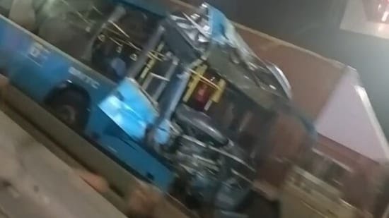 ബെംഗളൂരു എയർപോർട്ട് റോഡ് മേൽപ്പാലത്തിൽ സിറ്റി ബസ് ലോറിയിലിടിച്ച് രണ്ടുപേർ മരിച്ചു
