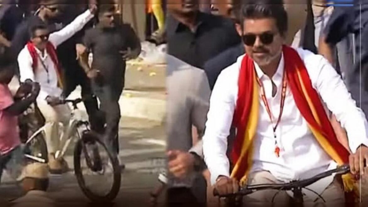 തുടര്ന്ന് വിജയ് കാരവനിലേക്ക് കയറുകയാണ്. അതേസമയം ആരാധകര് ചുറ്റും കൂടിയതിനിലാണ് താരം പിന്തിരിഞ്ഞതെന്ന് ചിലര് വാദിക്കുന്നു.അതേസമയം ഡിഎംകെയെ കടന്നാക്രമിച്ചായിരുന്നു വിജയുടെ കന്യാകുമാരി റോഡ്ഷോ. അഴിമതി താഴെത്തട്ട് മുതല് മുകള്ത്തട്ട് വരെ പടര്ന്നുപിടിച്ചിരിക്കുകയാണെന്ന് ആരോപിച്ച വിജയ്, അധികാരത്തിലെത്തിയാല് സര്ക്കാര് സേവനങ്ങള് ജനങ്ങളുടെ വീട്ടുപടിക്കല് നേരിട്ടെത്തിക്കുമെന്നും പ്രഖ്യാപിച്ചു. വിവേകാനന്ദ കോളേജിലെ പൊതുയോഗവും ഇന്നലത്തെ കടലൂര് റോഡ്ഷോയും റദ്ദാക്കിയത് ചൂണ്ടിക്കാട്ടി വിജയ് പ്രചാരണത്തില് നിന്ന് ഇടവേള എടുക്കുന്നുവെന്ന് ഡിഎംകെ പരിഹസിച്ചിരുന്നു.