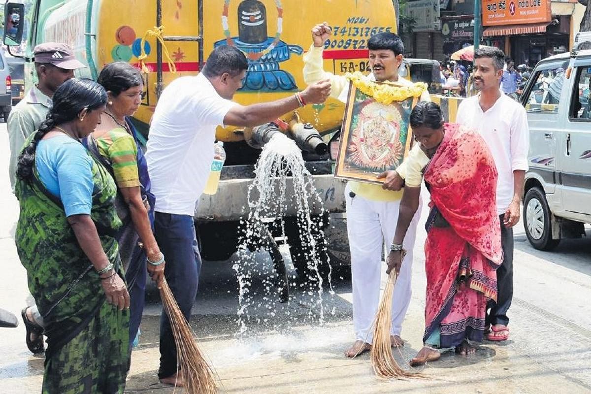 മൈസൂരു കെ.ആര് സര്ക്കിളില്നിന്ന് ആരംഭിച്ച ശുചീകരണ പ്രവര്ത്തനം സായാജി റാവു റോഡില് സര്ക്കിളിന് സമീപം പൊലീസ് തടഞ്ഞു. സംഭവത്തില്, പൊതുശല്യമുണ്ടാക്കിയെന്ന് ചൂണ്ടിക്കാട്ടി മൂന്നുപേര്ക്കെതിരെ ദേവരാജ് പൊലീസ് കേസെടുത്തു.