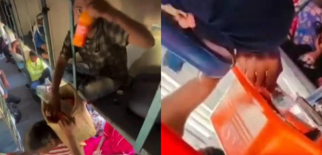 എന്നിട്ട് ഒരു കുറ്റബോധവുമില്ലാതെ കഴിക്കുകയും ചെയ്യുന്നത് വീഡിയോയില് കാണാം.”ഇന്ത്യക്കാരുടെ പൗരബോധം ഇനി നന്നാക്കാൻ കഴിയില്ല. കച്ചവടക്കാരൻ മുട്ട ബിരിയാണി വില്ക്കാൻ വന്നപ്പോള് മുകളിലിരുന്നയാള് അത് മോഷ്ടിച്ചു, പിന്നീട് അത് അതീവ സന്തോഷത്തോടെ കഴിക്കുകയും ചെയ്തു,” എന്ന കുറിപ്പോടെയാണ് വീഡിയോ പ്രചരിക്കുന്നത്. മറ്റൊരു വീഡിയോയില്, സ്ലീപ്പർ കോച്ചിലെ മുകളിലത്തെ ബർത്തില് ഇരിക്കുന്ന ഒരാള്, കച്ചവടക്കാർ നടന്നുപോകുമ്പോള് ലഘുഭക്ഷണങ്ങളും വെള്ളക്കുപ്പികളും അതിവേഗം കൈക്കലാക്കുന്നത് കാണാം. ഇത് ദാരിദ്ര്യം കൊണ്ടല്ല, മറിച്ച് ലജ്ജയില്ലാത്ത പെരുമാറ്റമാണ് എന്നാണ് ഉയരുന്ന വിമർശനം.