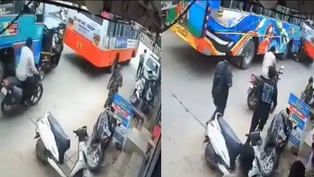 കർണാടകയിലെ ചിത്രദുർഗയില് നടന്ന ഞെട്ടിക്കുന്ന അപകട ദൃശ്യങ്ങളാണ് സമൂഹ മാധ്യമത്തില് വൈറലാകുന്നത്.രണ്ട് ബസുകള്ക്കിടയില് ഒരു ഓട്ടോറിക്ഷ ഇടിച്ചുകയറി ഗുരുതരമായി തകരുന്നത് വീഡിയോയില് കാണാം. സർക്കാർ ഉടമസ്ഥതയിലുള്ള ഒരു ബസ് ഒരു ഓട്ടോറിക്ഷയില് പിന്നില് നിന്ന് ഇടിക്കുന്നതും അതിനു മുന്നില് മറ്റൊരു ബസ് നില്ക്കുന്നതും ദൃശ്യങ്ങളില് കാണാം. ബസ് ഡ്രൈവർ ബ്രേക്ക് ഇടുമ്ബോഴേക്കും ഓട്ടോറിക്ഷ രണ്ട് ബസുകള്ക്കിടയില് തകർന്നിരുന്നു.എന്നാല് റിപ്പോർട്ടുകള് പ്രകാരം, ഓട്ടോറിക്ഷ ഡ്രൈവറും അതിലെ യാത്രക്കാരും അത്ഭുതകരമായി മരണത്തില് നിന്ന് രക്ഷപ്പെട്ടു.