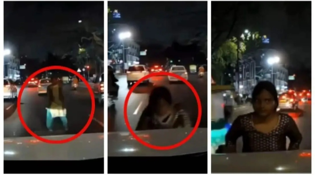 ബെംഗളൂരു:നഗരത്തിൽ പുതിയ തട്ടിപ്പ് ;തിരക്കേറിയ റോഡില്‍ കാറിന് മുന്നിലേക്ക് ചാടി യുവതി
