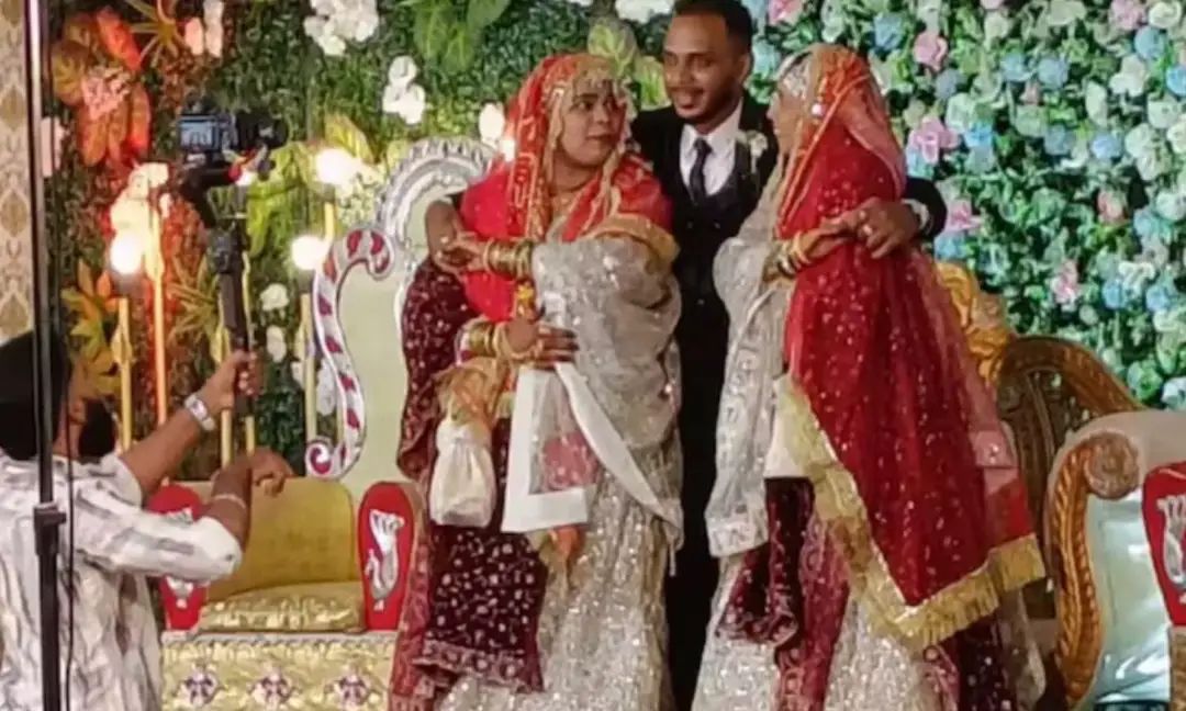 ബംഗളൂരു: കർണാടക ചിത്രദുർഗയിലെ ഹോരപ്പേട്ടയിലാണ് സംഭവം. ഹോരപ്പേട്ട സ്വദേശിയായ 25 കാരൻ വസീം ഷെയ്ഖാണ് തന്റെ അടുത്ത സുഹൃത്തുക്കളായ ഷിഫ ഷെയ്ഖ്, ജന്നത്ത് മഖന്ദർ എന്നിവരെ വിവാഹം ചെയ്തത്.ഒക്ടോബർ 16ന് ഒരേ വിവാഹവേദിയില് വച്ചായിരുന്നു വിവാഹം. വർഷങ്ങളായി ഇവർ മൂന്ന് പേരും സൗഹൃദത്തിലായിരുന്നു. തുടർന്ന് ഒരുമിച്ച് ദാമ്ബത്യ ജീവിതം നയിക്കാനും ഇവർ തീരുമാനിക്കുകയായിരുന്നു.ചിത്രദുർഗയിലെ എംകെ പാലസ് വേദിയില് ആഡംബരമായി നടന്ന ചടങ്ങില് ഒരുപോലുള്ള വേഷമണിഞ്ഞ യുവതികളുടെ കൈപിടിച്ച് വസീം വിവാഹത്തിന് സമ്മതം അറിയിച്ചു. തുല്യതയുടെയും സാഹസികതയുടെയും ഒരു ജീവിതമാണ് തങ്ങള് മുന്നോട്ട് വാഗ്ദാനം ചെയ്യുന്നതെന്ന് ദമ്ബതികള് പറഞ്ഞു.രണ്ട് കുടുംബങ്ങളും പൂർണ സമ്മതത്തോടെയാണ് വിവാഹത്തില് പങ്കെടുത്തത്. ചടങ്ങുകള്ക്കിടെ വരൻ രണ്ട് യുവതികളുടെ കൈകള് പിടിക്കുന്ന വീഡിയോ സമൂഹ മാധ്യമങ്ങളില് വൈറലായിരിക്കുകയാണ്. ദശലക്ഷക്കണക്കിനുപേരാണ് ഇതിനോടകം വീഡിയോ കണ്ടിട്ടുള്ളത്.ഇവരുടെ തീരുമാനത്തെ അഭിനന്ദിച്ചുകൊണ്ട് #TripleWedding പോലുള്ള ഹാഷ്ടാഗുകള് സോഷ്യല് മീഡിയയില് ട്രെൻഡിംഗാണ്. ബഹുഭാര്യത്വം, സൗഹൃദം പ്രണയമായി മാറുന്നത് എന്നിവയെക്കുറിച്ച് വലിയ ചർച്ചകള്ക്കും സോഷ്യല് മീഡിയയില് സജീവമായിരിക്കുകയാണ്.